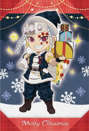 「鬼滅の刃」のキャラクター達が、クリスマスのサンタをイメージした装いで登場!カフェでは限定メニュー、ノベルティを提供。更にみにきゃらイラストを使用したグッズも登場です。