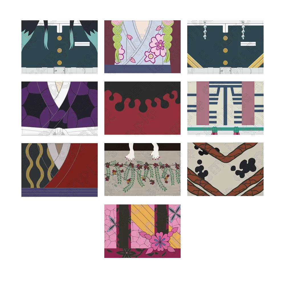 An illustration design of scenes with the Upper Ranks from Demon Slayer: Kimetsu no Yaiba -To the Swordsmith Village- has been made into a postcard set. Place them together with your mount to show them off.