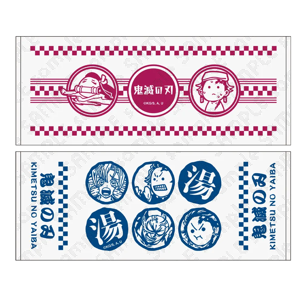 An illustration design of Tanjiro Kamado, Nezuko Kamado, Genya and Mitsuri Kanroji using the hotspring has been made into a towel set.