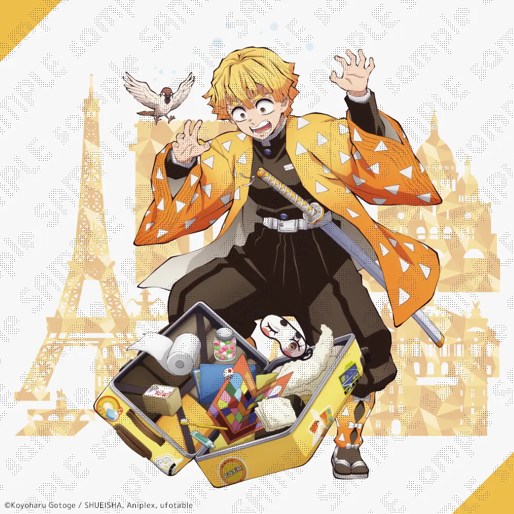 Stickers based on the Demon Slayer -Kimetsu no Yaiba- characters going on the World Tour have been merchandized. Place a matching sticker of Zenitsu on your luggages.