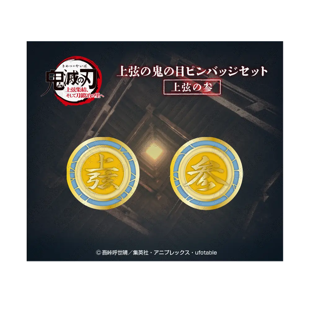 An illustration design of the Upper Ranks eyes from Demon Slayer: Kimetsu no Yaiba -To the Swordsmith Village- has been made into a pin badge.