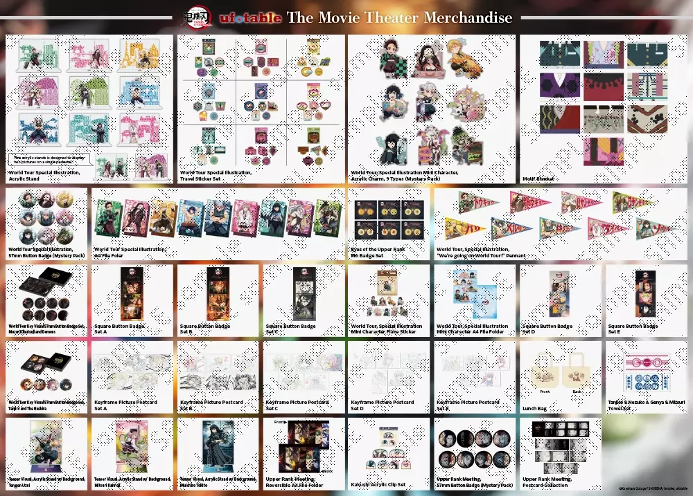 At the same time as the premiere of the "Demon Slayer: Kimetsu no Yaiba -To the Swordsmith Village- World Tour -" We prepared a total of 20 types of merchandise for the film, which were sold at movie theaters in Japan.