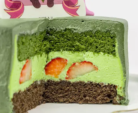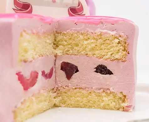 ホールケーキを切るとイラストをイメージした彩りが現れます。