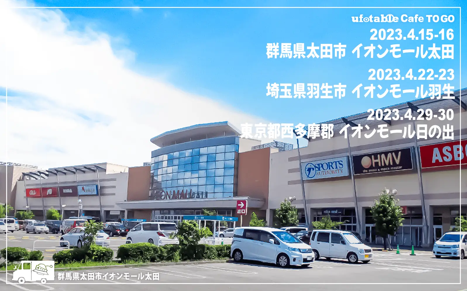 4月の出店のお知らせです。まずは出店ご依頼をいただき、イオンモール太田へ。ufotableとしても初めて群馬県に伺います。