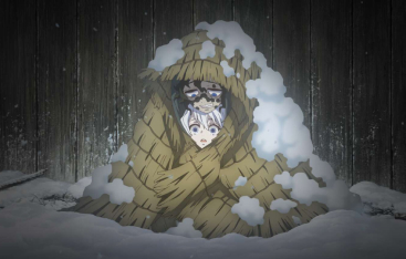 幼き日の妓夫太郎と梅をテーマにしたデザートです。求肥と粉糖を降り積もる雪に見立て、その中には妓夫太郎と梅を表現した白玉とチーズのクリームを包みました。