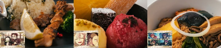 刀鍛冶の里編 キャラクター絵巻カフェで提供されたメニュー。ノベルティをそれぞれリメイク・リデザインしたボリューム満点なコラボカフェをお届け。