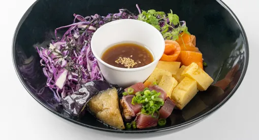 炭治郎・善逸・玄弥・カナヲを表現した具材の下に、誰よりも早く入山して誰よりも早く下山した、炭治郎の四人目の同期を表現した具材を忍ばせてご提供いたします。