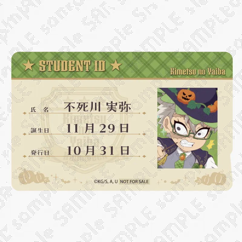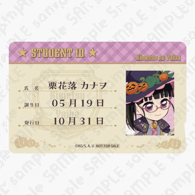 学生証風にデザインされたハロウィン2024イベント限定ポイント景品のICステッカーです。