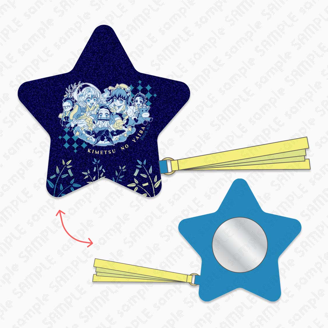 七夕描き下ろしみにきゃらイラストを使用したラメ入り星型ミラーが登場。 イラストが印刷されている部分は、天の川のようにキラキラ光るラメ入り♪ 持ち運びにも便利なサイズで、お出掛けにピッタリです★