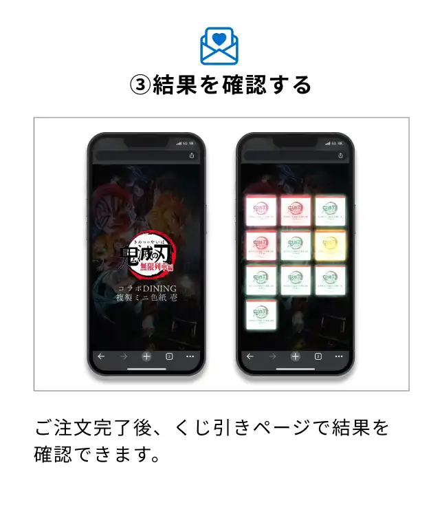 コラボレーションDINING限定で販売された「お楽しみくじ」の目玉景品である「アニメスタッフ直筆色紙」、特別編集版にあわせて新規に描き下ろされた提供イラスト、全17種を全て収録。どうぞお楽しみください。